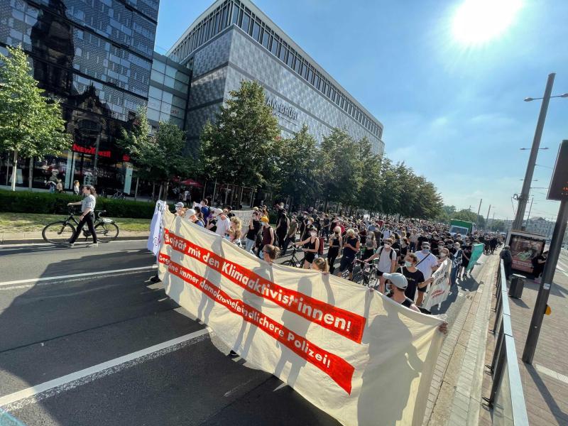 In der Gefangenensammelstelle wurden den Aktivist:innen durch die Polizei ihre Grundrechte beschnitten. Ihnen wurden Decken, Essen, Trinken und Telefonate verwehrt. Zudem wurde DNA entnommen, ohne Einsicht in den richterlichen Beschluss zu gewähren. Außerdem erfolgte die Aufklärung über den Grund der Festnahme teilweise erst verspätet. Unter Androhung von Untersuchungshaft kamen die letzten Aktivist:innen nach über 30 Stunden frei. In der Zwischenzeit erlebten sie eine Verleumdung durch den sächsischen Ministerpräsidenten Michael Kretschmer, der ihnen Gewalttätigkeit vorwarf.
